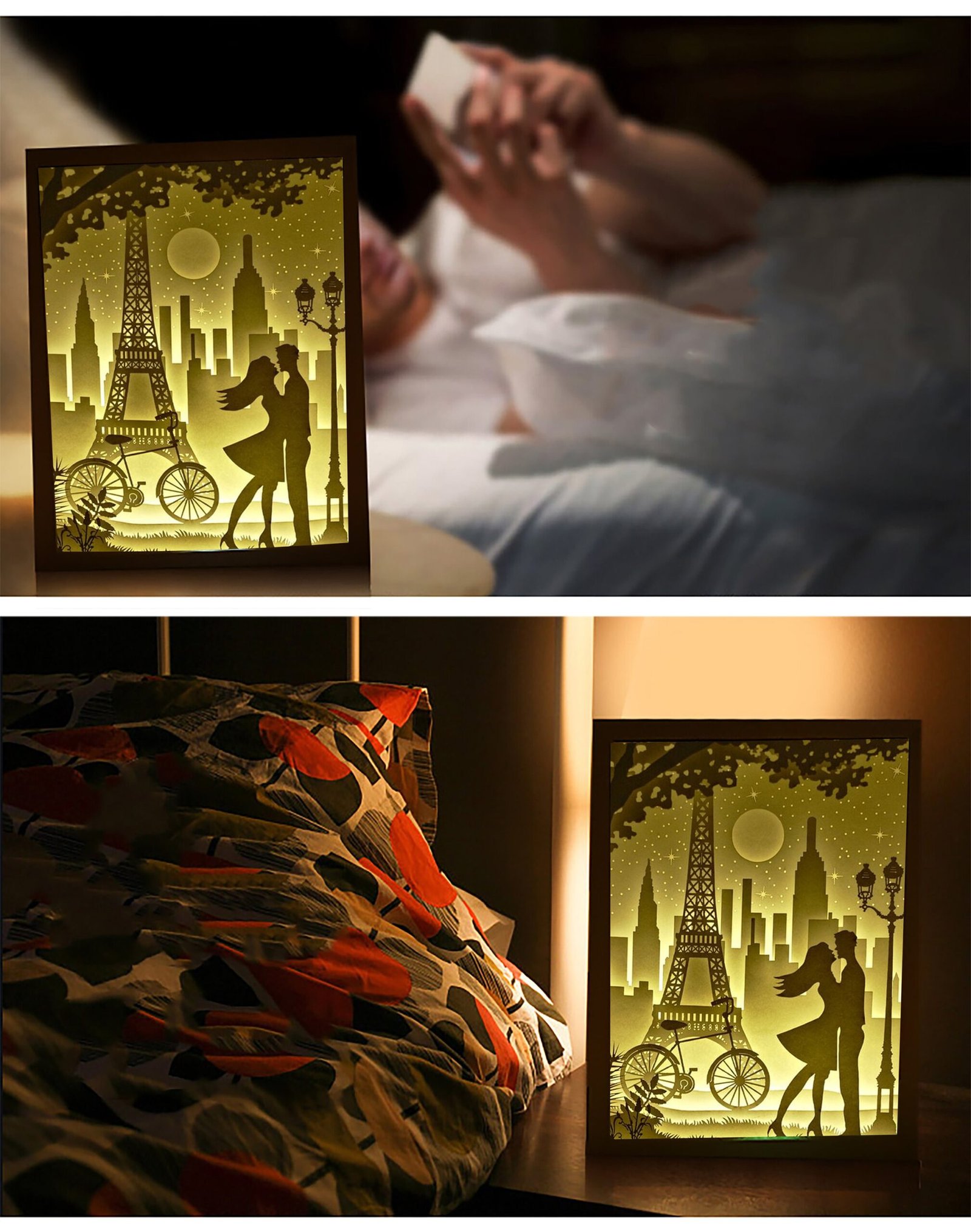 Conclusion: Elevate the ambiance of your space with the Paris Romantic Light Box SVG. Craft a captivating LED Night Lamp inspired by the romance of Paris and add a touch of elegance to your decor. Whether you’re looking to create a cozy atmosphere for a romantic evening or simply want to enhance your space with Parisian charm, this Shadow Box Paper Cut File is the perfect choice.